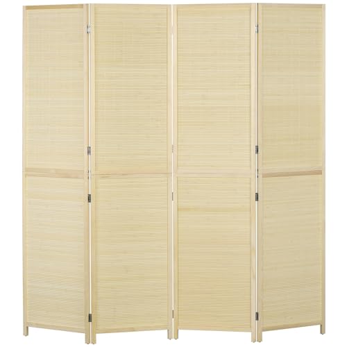 HOMCOM Paravent en Bois de Bambou 4 Panneaux 180 x 180 cm sé...