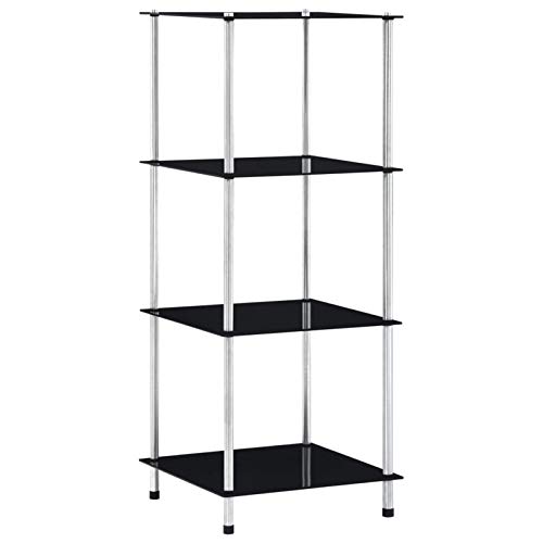 Mengtu Étagère à 4 niveaux Noir 40 x 40 x 100 cm en verre tr...