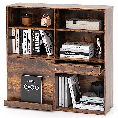 GOPLUS Bibliothèque Style Industriel avec Étagères Réglables...