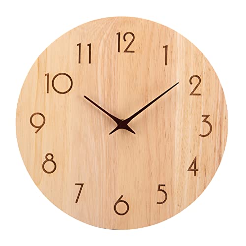 ACCSHINE Horloge Murale Bois Naturel Massif Horloge Bois 12...