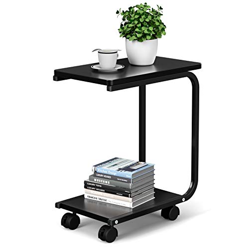 GOPLUS Table d’Appoint Roulante avec 2 tablettes, Lit de Can...