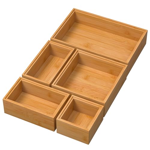 Exabang Organisateurs de Tiroirs Empilables Bambou