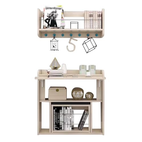 ZPRYZHD Table Pliante, Bureau D''ordinateur Mural avec Bibli...