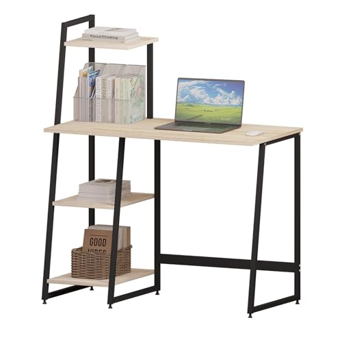 PTUWODS Ordinateur portable pliable bureau avec étagère beig...