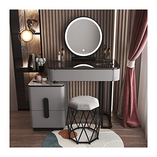 Coiffeuse en verre avancée, bureau de maquillage, rangement...