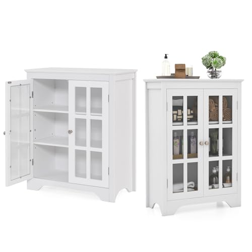 KOMFOTTEU Petite armoire en verre blanche avec 2 étagères ré...