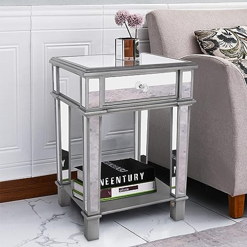 Artloge Table de Chevet Miroir Verre Meuble Salon Rangement...