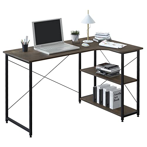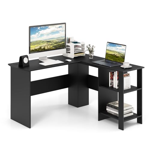 Bureau bureau en L, étagères rangement 2 niveaux, 2 pass-câb...