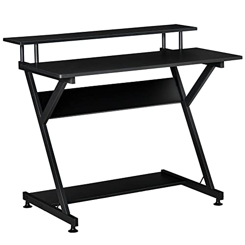 Bureau WOLTU - 2 étagères, bureau en bois, rangement, noir e...