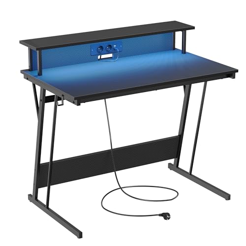 Vasagle Bureau Gaming LED Multiprise Noir Carbone