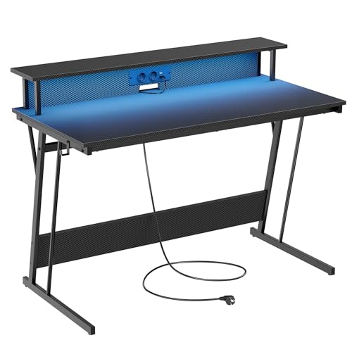Vasagle Bureau Gaming LED Multiprise Noir Carbone 60x120x76c...