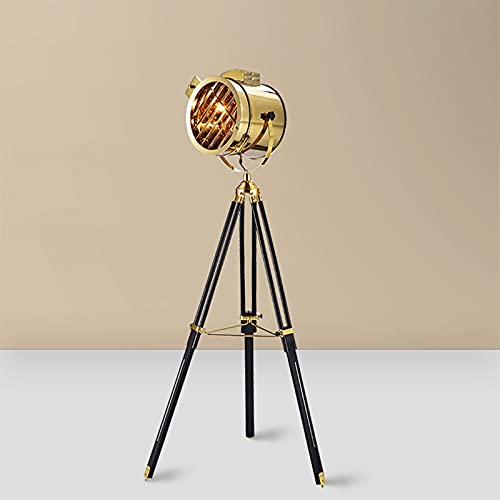 Lampadaire industriel trépied projecteur lecture bois abat-j...