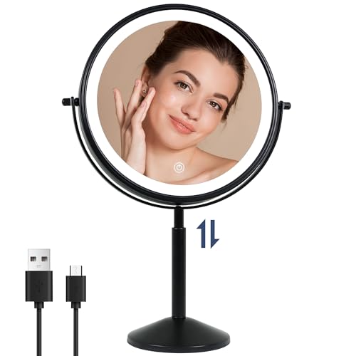 Miroir de maquillage 9\" x 10, grossissant LED, réglable, bu...