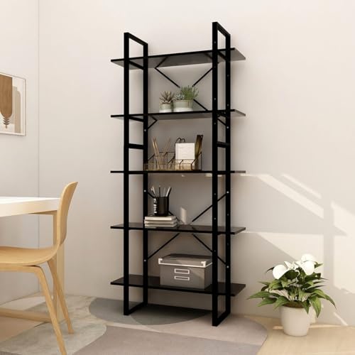 Rantry Bibliothèque à 5 étagères, noir, 80 x 30 x 175 cm, en...