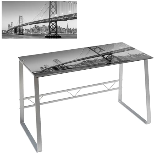 Bureau Table Porte PC Verre Trempé Skyline 75x120x60cm