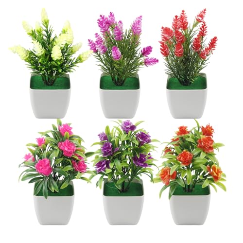 Limpac 6 Pièces Mini Fleurs Artificielles en Pot Rose Artifi...