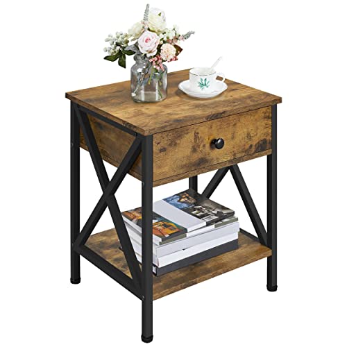 Table Yaheetech Bois Métal Nuit Industrielle Appoint Salon B...