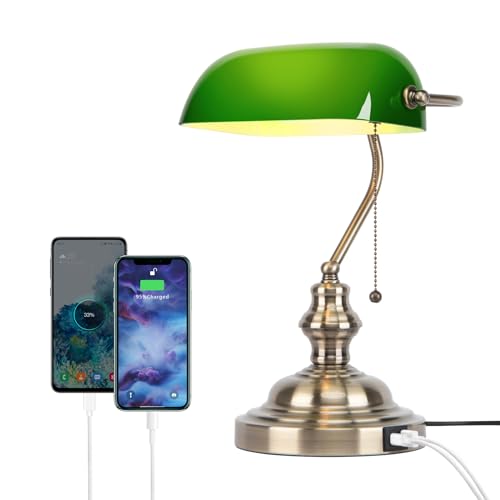 1.Style Classique : Cette lampe de banquier verte ajoute une...