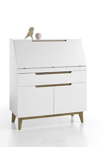 Bureau de sécretaire en laqué blanc mat avec piètement en ch...