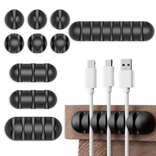 Clips Câble Organisateur Bureau, 10 Auto-adhésifs, Gestion C...