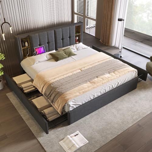 KOMH Double Rembourré, 4 Tiroirs, Cadre avec Rangement, Plat...