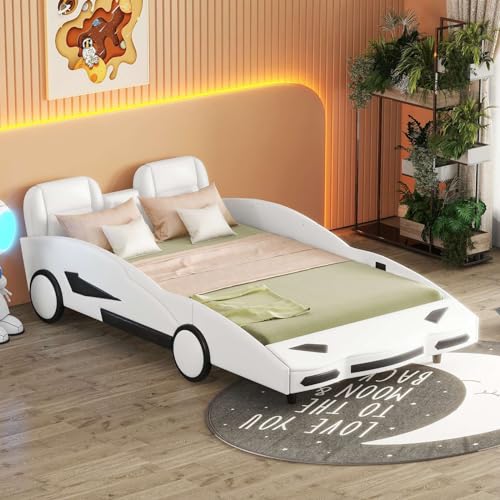 KOMHTOM Enfant Voiture Plateforme Rembourrée Tête, Lit Latte...