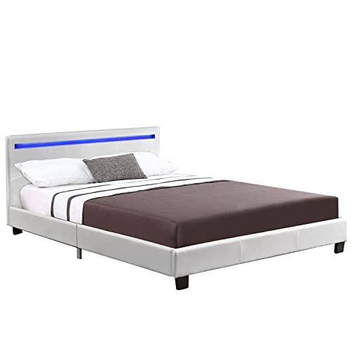 Juskys Lit Rembourré Verona - Lit avec Sommier LED et Éclair...