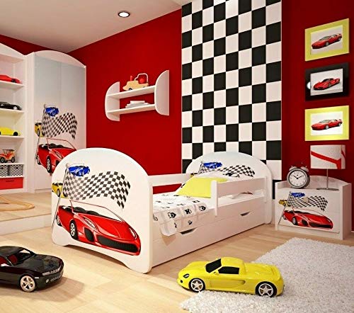 MEBLX Lit enfant, tiroirs mousse sécurité, cadre MDF tête in...