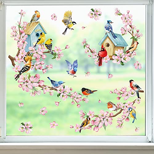 wondever Stickers Fenetre Fleur Oiseaux sur Branche Autocoll...