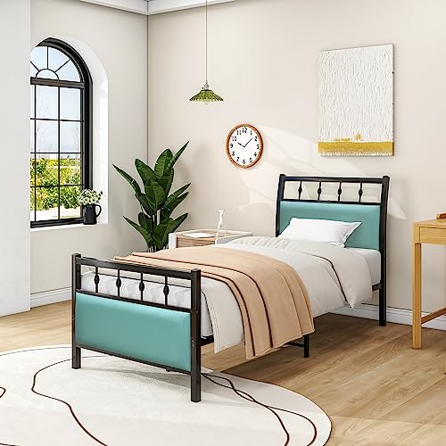 FOUBA METAL cadre lit simple noir vert 90x200cm
