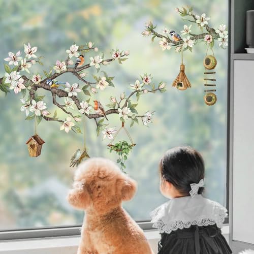 Tanlaby Stickers Fenêtre Branches Oiseaux Printemps Hummingb...