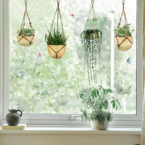 Tanlaby Plantes Vertes Stickers Fenêtre Pot Suspendu Autocol...