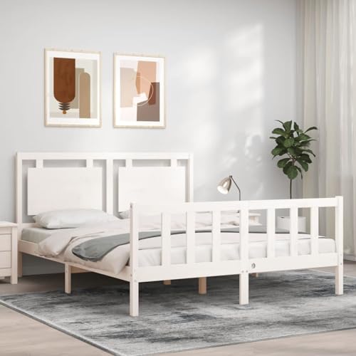 Lauoeriau Cadre de lit en bois massif, King Size blanc