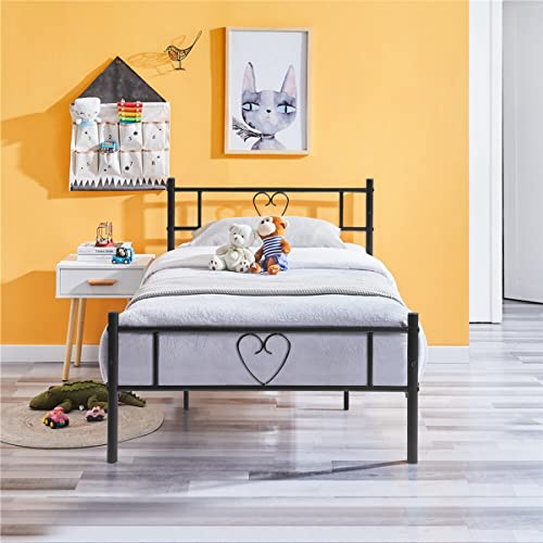 FetiNes Cadre de lit en métal coeur pour matelas 90x200cm