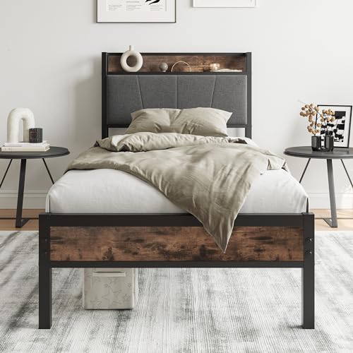 Molblly Cadre de lit simple rembourré, tête de lit et lattes...