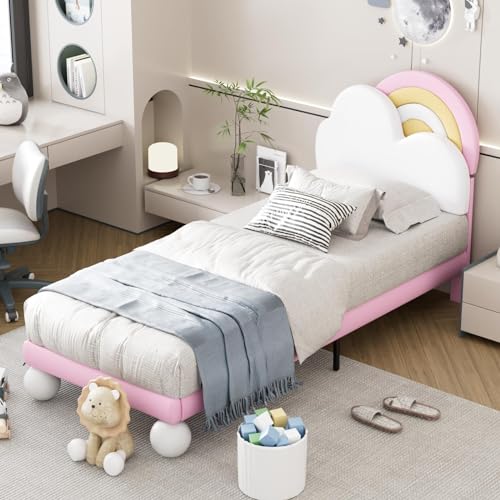 KOMHTOM Enfant Lit Simple Rembourré Réglable Hauteur Cadre P...