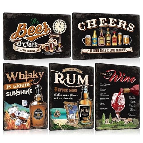 Bar Decoration Murale 5PCS Vintage Metal Pub Cadre Bistrot