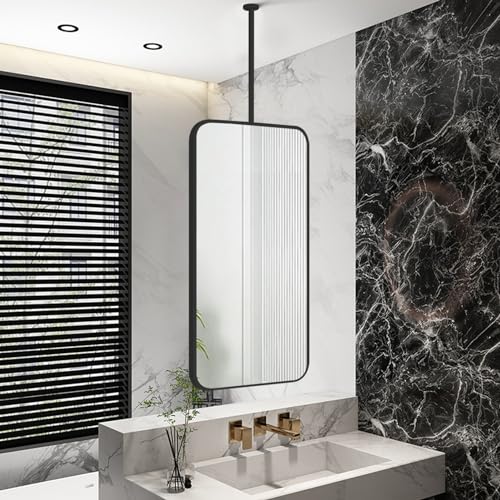 Miroir courtoisie suspendu plafond, cadre métal noir, grand...