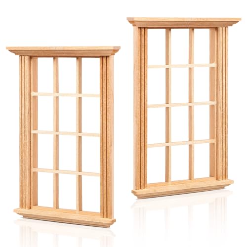 Miniatures Fenêtres en Bois - 2 pièces Cadre & Volants
