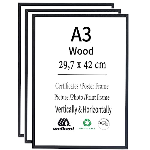 Weikani Lot de 3 cadres photo A3 noirs - 29,7 x 42 cm - Cadr...