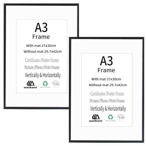 Weikani Lot de 2 cadres photo A3 noirs - 29,7 x 42 cm - Cadr...