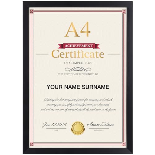 EXYGLO Cadre Photo A3 Noir Lot de 4, Cadre Certificat 29,7x4...