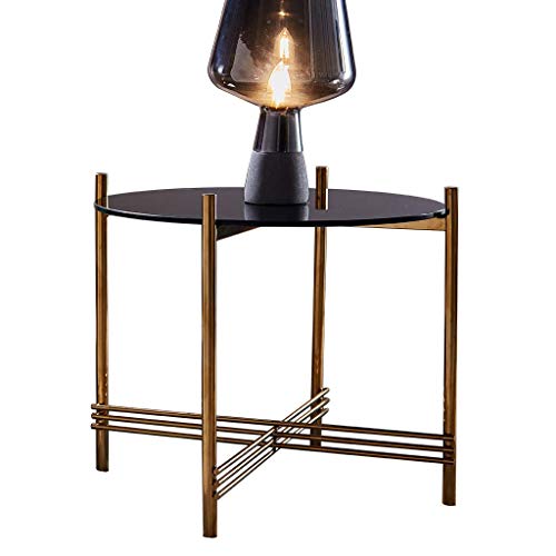 Ronde moderne Dmora avec cadre doré et plateau verre noir