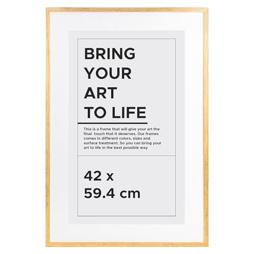 JUNOMI® Cadre photo DIN A2 en aluminium - Couleur doré (bril...