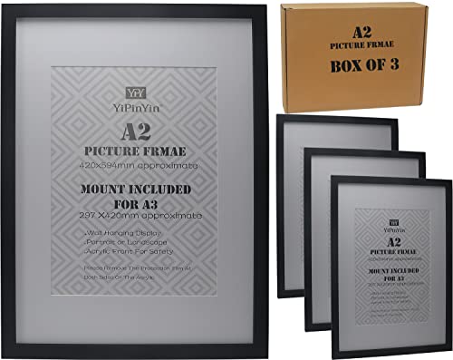 Lot de 3 cadres photo A2 noirs (42 x 59,4 cm) avec passe-par...