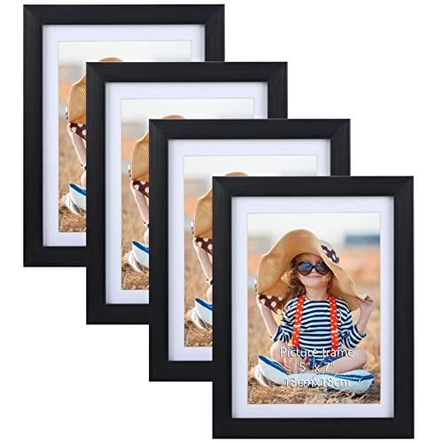 EXYGLO Cadre Photo Noir 13x18 cm Lot de 4 avec Passe-Partout...