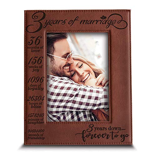 BELLA BUSTA - Cadre photo en cuir gravé « 3 Years of Marriag...