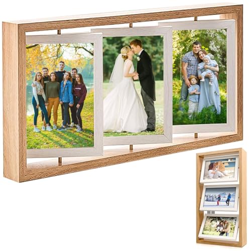 Cadre Photo Rotatif, Cadre Double Face en Bois Rustique Rota...