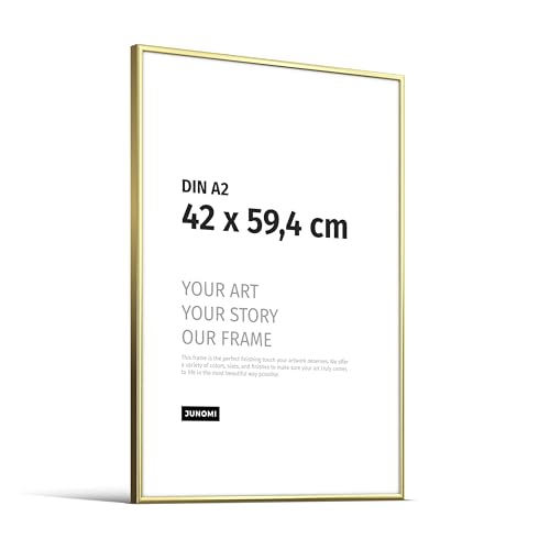 JUNOMI® Cadre photo DIN A2 en aluminium - Couleur doré (bril...