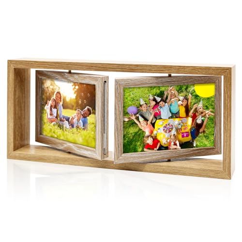 Cadre Photo Rotatif, Cadre Photo en Bois, Double Face pour A...